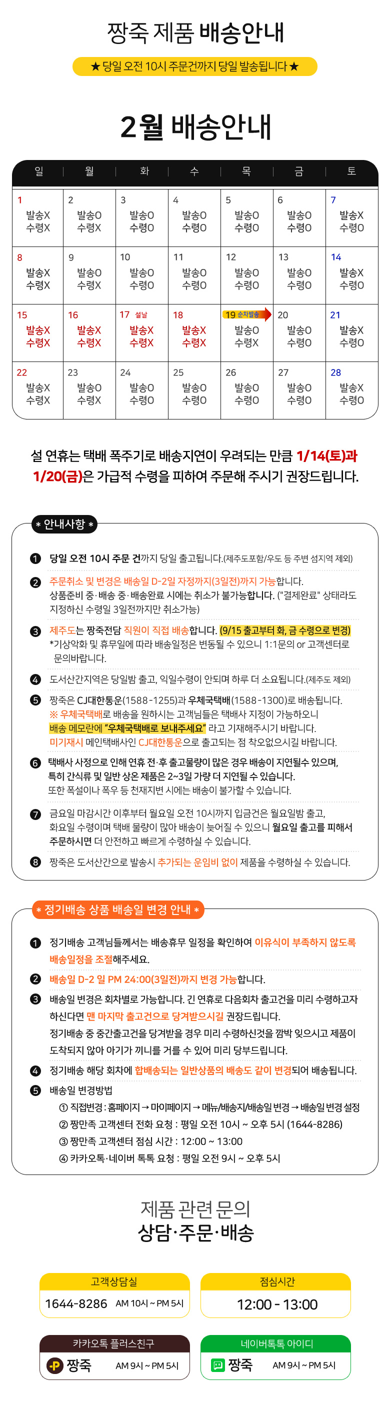 ☎ 주문 발송마감 : AM 10시 마감