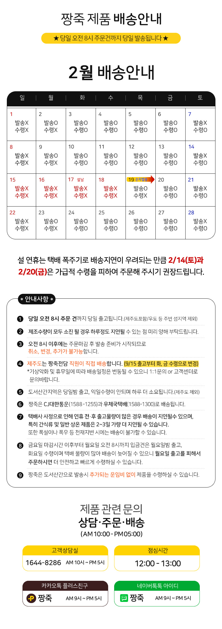 ☎ 주문 발송마감 : AM 10시 마감
