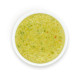 정제수, 계란20.04%(국산,무항생제), 애호박11.45%(국산), 곡류가공품{옥수수(미국산),정제수, 설탕,정제소금(미국산)}, 연두부, 치즈3.44%{유기농체다치즈(독일산,뉴질랜드산)}, 귀리분말, 단호박1.91%(국산), 당근, 구운소금, 쌀눈(국산), 복합조미식품, 무분말, 대파분말 [계란,우유,대두,밀,소고기 함유]
