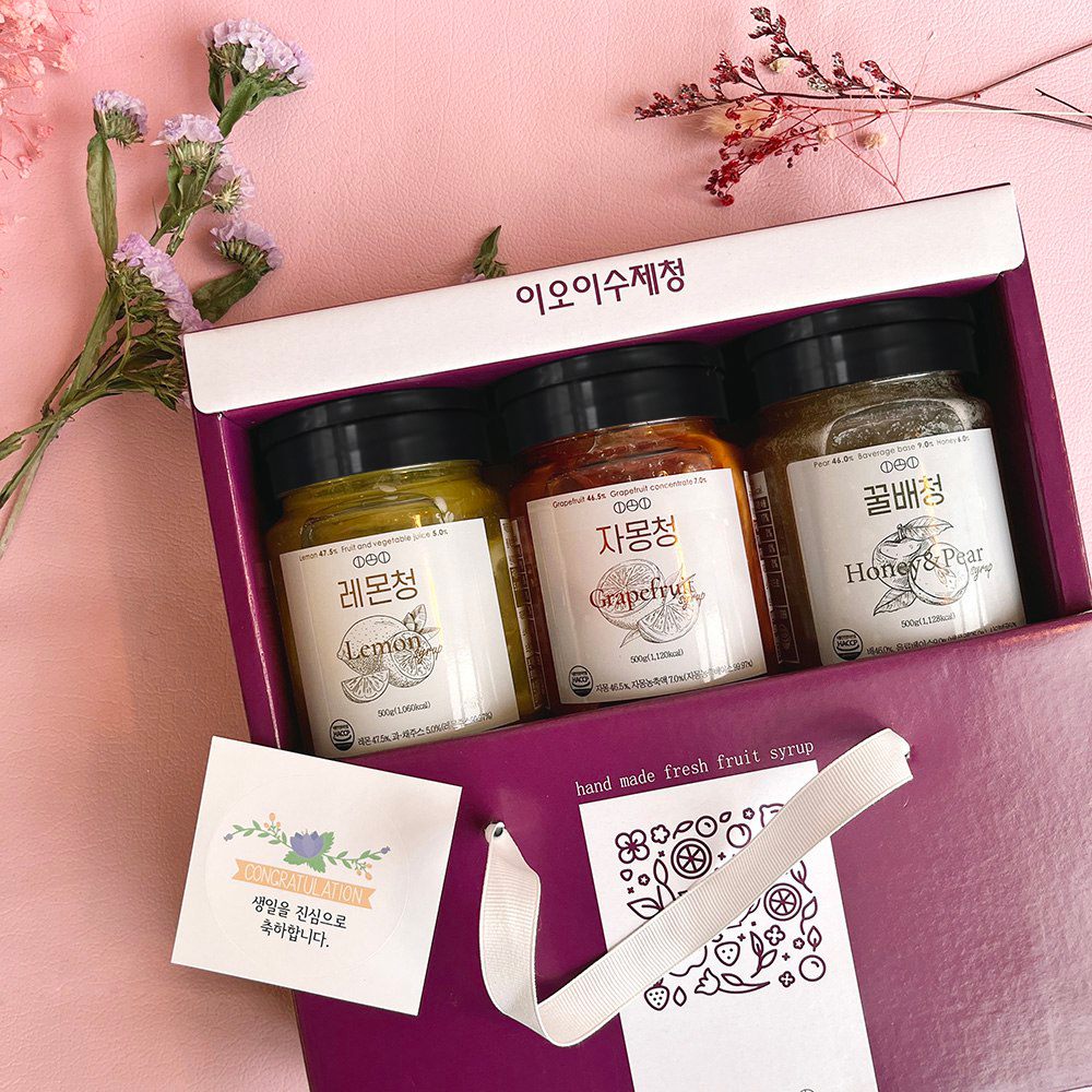 • [선물세트] 짱죽 이오이수제청 자몽+레몬+샤인머스캣 500g / 답례품