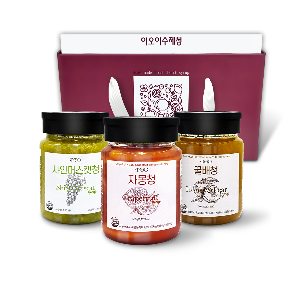 • [선물세트] 짱죽 이오이수제청 자몽+샤인머스캣+꿀배 500g / 답례품